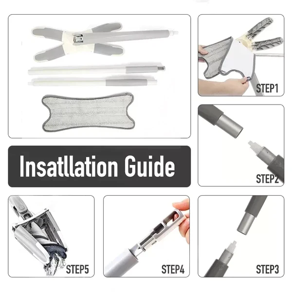 1. 360° ROTATING MOP HEAD: The 360° rotatable head along with the X-shaped design makes it easy to maneuver around hard-to-reach areas. The 55" (140 cm) extra-long steel handle in a slim design gives the flat mop easy access to narrow spaces like gaps or slots under the bed or between the sofas. With our hard floor mop, you can enjoy an efficient house cleaning experience. No more bending over to mop ever!